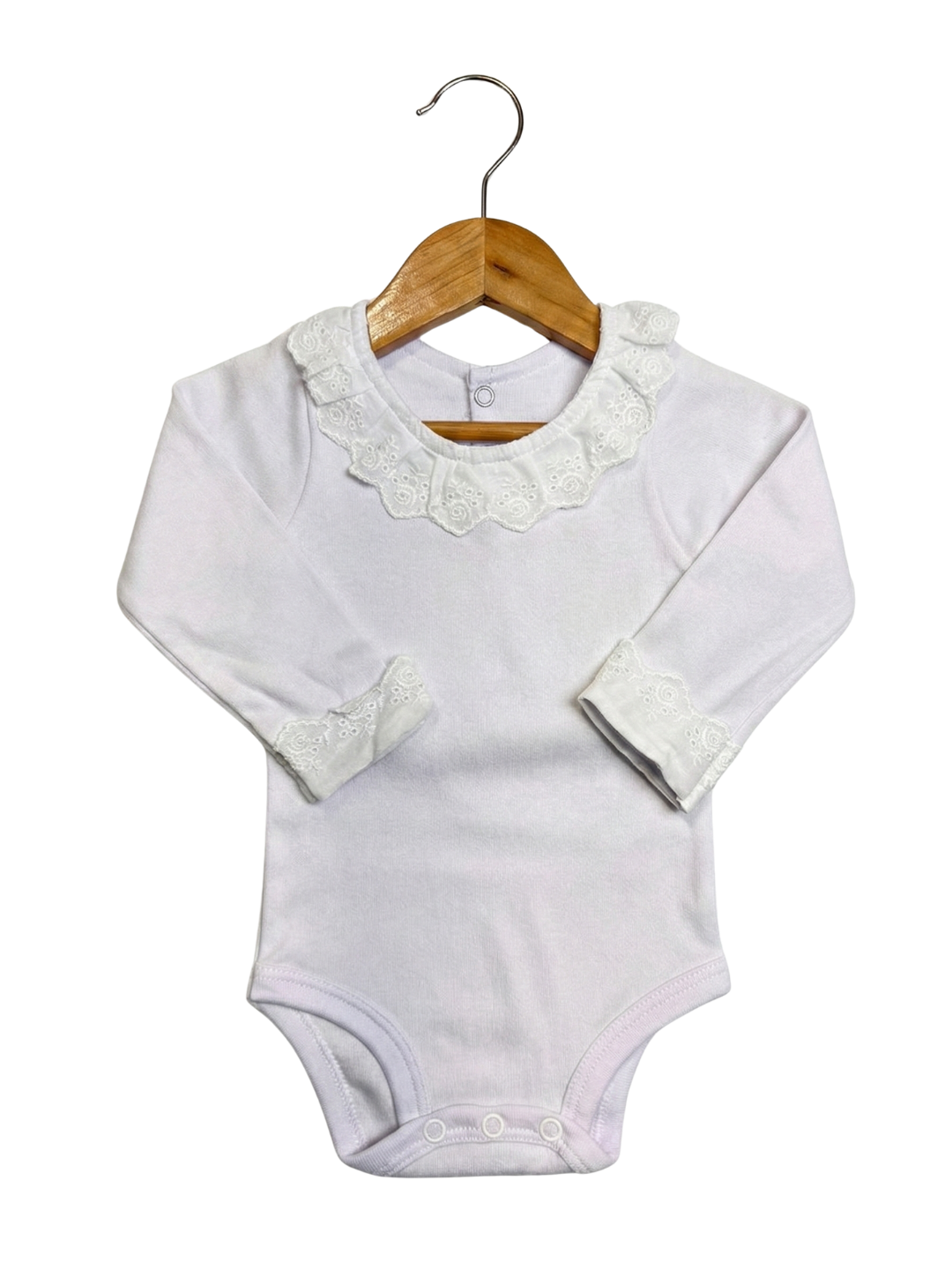 Um clássico cheio de charme e delicadeza! Nosso body com gola de renda é confeccionado em 100% algodão, proporcionando o máximo de conforto e suavidade para a pele sensível do bebê.