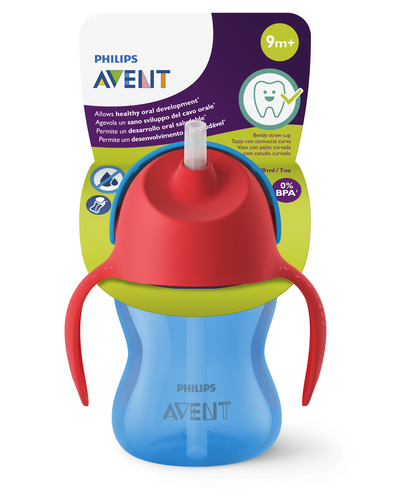 Copo Com Canudo Curvado Azul E Vermelho 200ml Philips Avent é uma escolha cuidadosamente projetada para acompanhar o crescimento ativo e saudável de crianças em desenvolvimento.