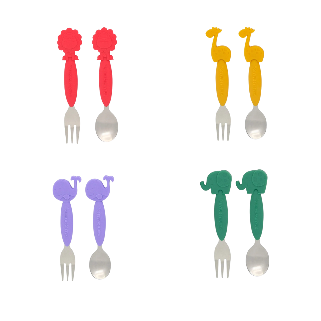 O seu pequeno está naquela fase que já quer comer como os adultos, mas ele ainda não entende que as coisas de metal são afiadas e podem machucar. O Jogo de colher e garfo da Marcus & Marcus é a versão perfeita para as crianças! Os talheres são feitos em inox e têm o cabo em silicone, dando mais aderência à pega. A borda, mesmo sendo em inox, é arredondada para não machucar a boca. O garfo, também em inox e com cabo em silicone, tem dentes com bordas arredondadas. Ambos os talheres têm a carinha da Porquinha Pokey no cabo. Produto atóxico, livre de BPA e ftalato.