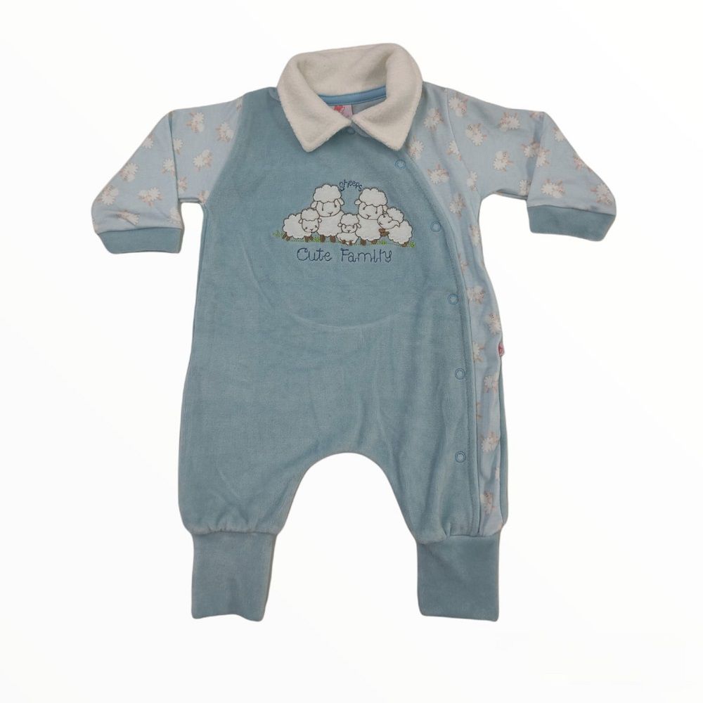 Macacão plush luxo Otolina, com a estampa linda e divertida de ovelinhas dando todo charme a peça, com um bordado de ovelinhas cute family.